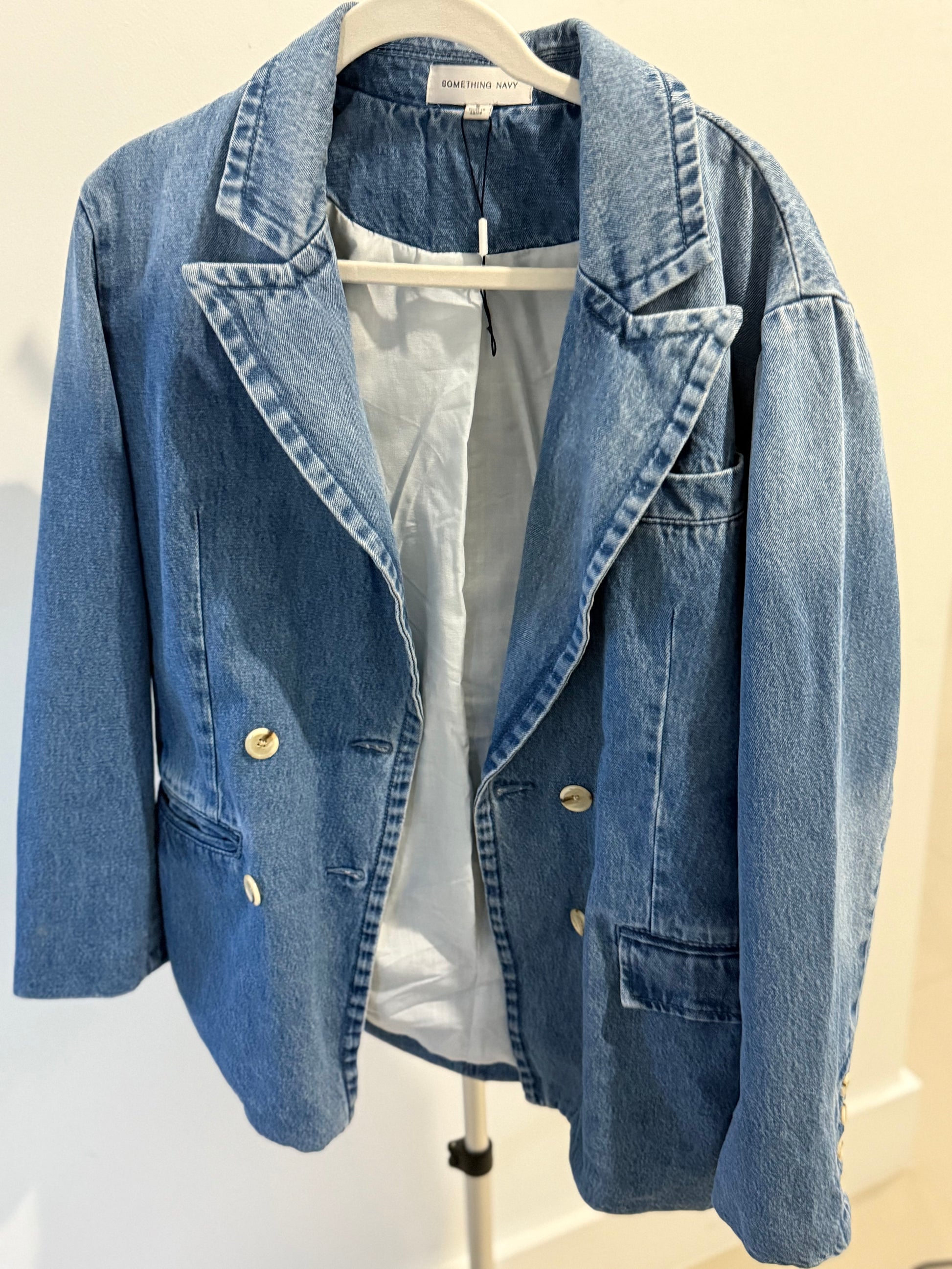 something navi denim blazer